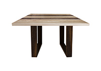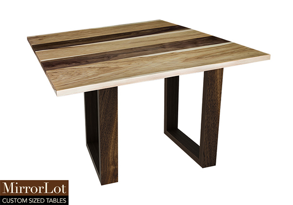 This natural walnut and pecan hickory table brings rustic charm to any room in your house. It is a square table, but can be customized to your desired shape and size. The square shape table top is made from solid walnut, pecan hickory wood and the table legs are