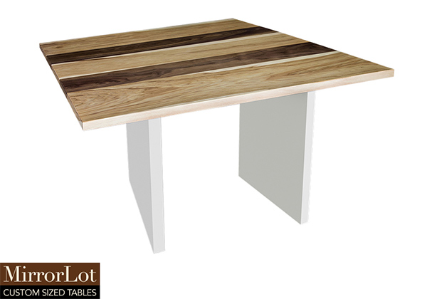 This natural walnut and pecan hickory table brings rustic charm to any room in your house. It is a square table, but can be customized to your desired shape and size. The square shape table top is made from solid walnut, pecan hickory wood and the table legs are
