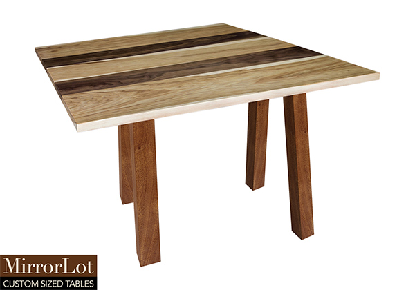 This natural walnut and pecan hickory table brings rustic charm to any room in your house. It is a square table, but can be customized to your desired shape and size. The square shape table top is made from solid walnut, pecan hickory wood and the table legs are