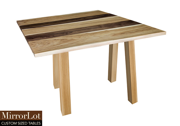 This natural walnut and pecan hickory table brings rustic charm to any room in your house. It is a square table, but can be customized to your desired shape and size. The square shape table top is made from solid walnut, pecan hickory wood and the table legs are
