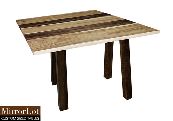 This natural walnut and pecan hickory table brings rustic charm to any room in your house. It is a square table, but can be customized to your desired shape and size. The square shape table top is made from solid walnut, pecan hickory wood and the table legs are