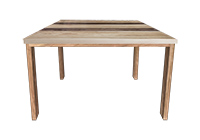 This natural walnut and pecan hickory table brings rustic charm to any room in your house. It is a square table, but can be customized to your desired shape and size. The square shape table top is made from solid walnut, pecan hickory wood and the table legs are