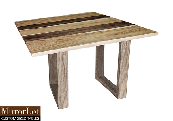 This natural walnut and pecan hickory table brings rustic charm to any room in your house. It is a square table, but can be customized to your desired shape and size. The square shape table top is made from solid walnut, pecan hickory wood and the table legs are