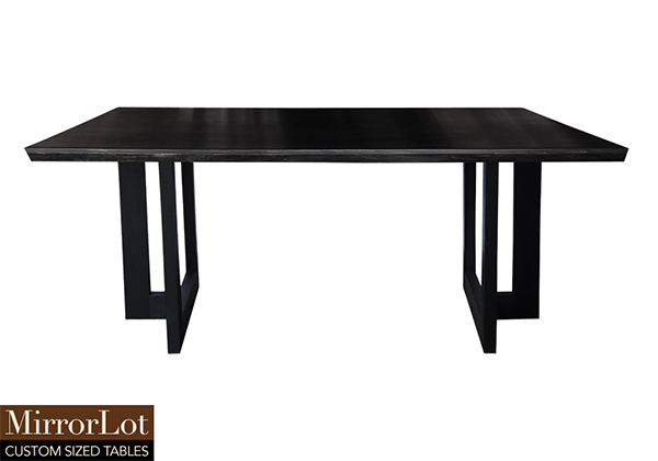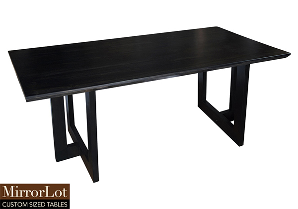 This smooth black table is simple, yet has a classic look that never goes out of style. It is rectangular with beveled edges, but can be customized to your desired shape and size. The rectangle shape table top is made from solid poplar wood and the table legs are