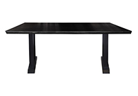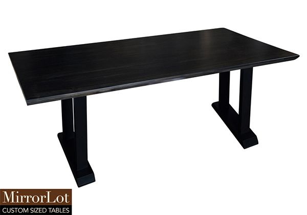 This smooth black table is simple, yet has a classic look that never goes out of style. It is rectangular with beveled edges, but can be customized to your desired shape and size. The rectangle shape table top is made from solid poplar wood and the table legs are