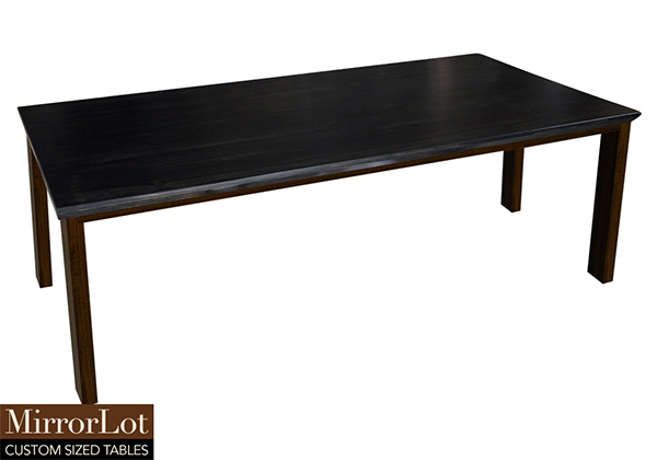 This smooth black table is simple, yet has a classic look that never goes out of style. It is rectangular with beveled edges, but can be customized to your desired shape and size. The rectangle shape table top is made from solid poplar wood and the table legs are