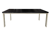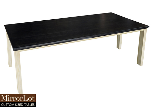 This smooth black table is simple, yet has a classic look that never goes out of style. It is rectangular with beveled edges, but can be customized to your desired shape and size. The rectangle shape table top is made from solid poplar wood and the table legs are