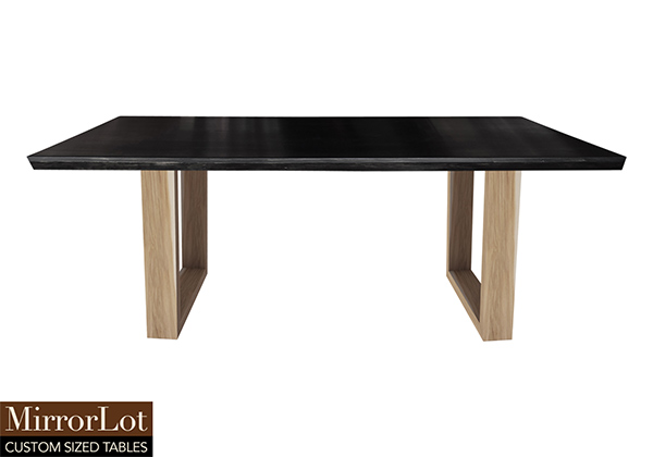 This smooth black table is simple, yet has a classic look that never goes out of style. It is rectangular with beveled edges, but can be customized to your desired shape and size. The rectangle shape table top is made from solid poplar wood and the table legs are