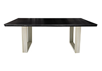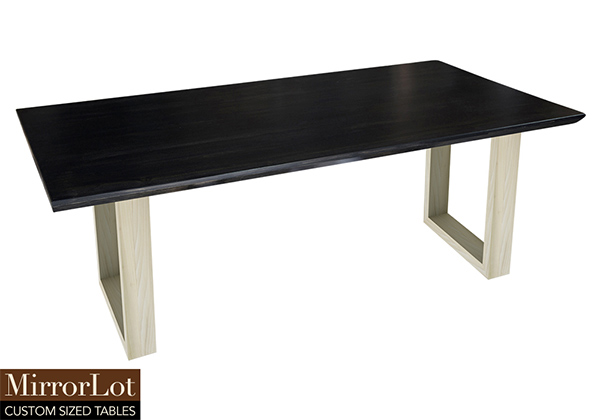 This smooth black table is simple, yet has a classic look that never goes out of style. It is rectangular with beveled edges, but can be customized to your desired shape and size. The rectangle shape table top is made from solid poplar wood and the table legs are