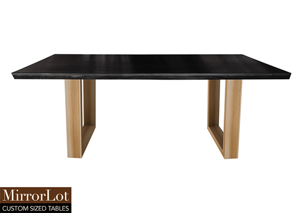 This smooth black table is simple, yet has a classic look that never goes out of style. It is rectangular with beveled edges, but can be customized to your desired shape and size. The rectangle shape table top is made from solid poplar wood and the table legs are