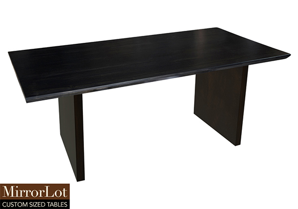 This smooth black table is simple, yet has a classic look that never goes out of style. It is rectangular with beveled edges, but can be customized to your desired shape and size. The rectangle shape table top is made from solid poplar wood and the table legs are