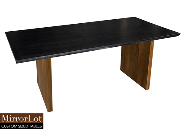 This smooth black table is simple, yet has a classic look that never goes out of style. It is rectangular with beveled edges, but can be customized to your desired shape and size. The rectangle shape table top is made from solid poplar wood and the table legs are