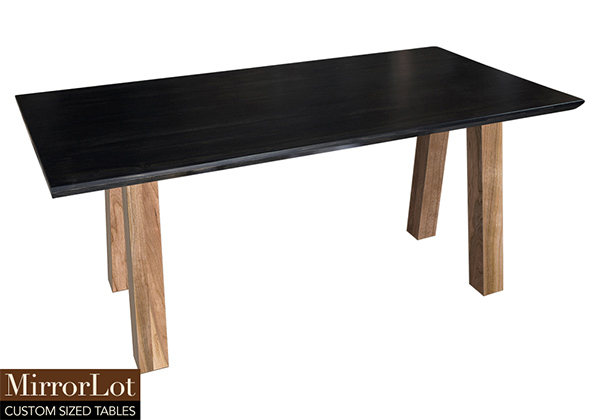 This smooth black table is simple, yet has a classic look that never goes out of style. It is rectangular with beveled edges, but can be customized to your desired shape and size. The rectangle shape table top is made from solid poplar wood and the table legs are