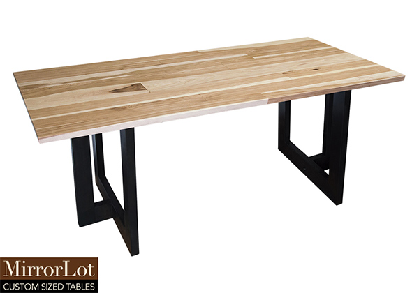 This natural pecan hickory table brings rustic charm to any room in your house. It is rectangular, but can be customized to your desired shape and size. The rectangle shape table top is made from solid pecan hickory wood and the table legs are