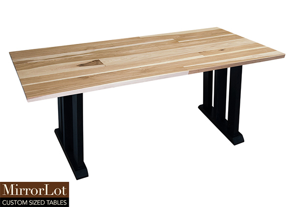 This natural pecan hickory table brings rustic charm to any room in your house. It is rectangular, but can be customized to your desired shape and size. The rectangle shape table top is made from solid pecan hickory wood and the table legs are