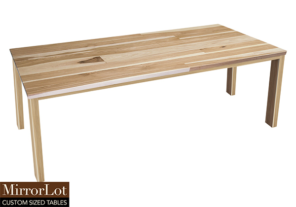This natural pecan hickory table brings rustic charm to any room in your house. It is rectangular, but can be customized to your desired shape and size. The rectangle shape table top is made from solid pecan hickory wood and the table legs are