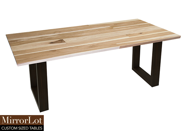 This natural pecan hickory table brings rustic charm to any room in your house. It is rectangular, but can be customized to your desired shape and size. The rectangle shape table top is made from solid pecan hickory wood and the table legs are