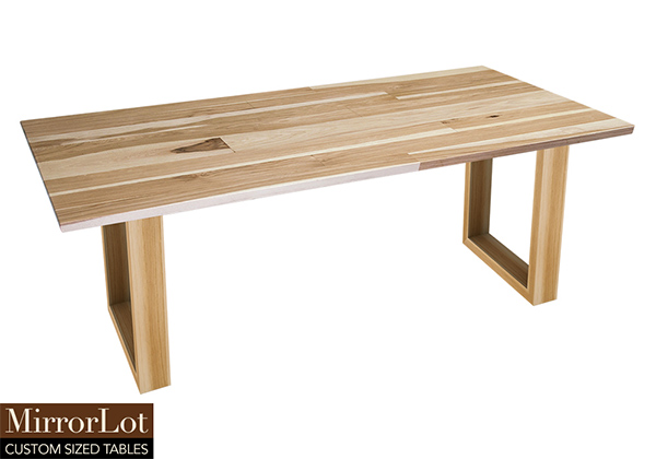 This natural pecan hickory table brings rustic charm to any room in your house. It is rectangular, but can be customized to your desired shape and size. The rectangle shape table top is made from solid pecan hickory wood and the table legs are