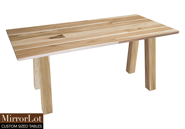 This natural pecan hickory table brings rustic charm to any room in your house. It is rectangular, but can be customized to your desired shape and size. The rectangle shape table top is made from solid pecan hickory wood and the table legs are