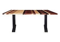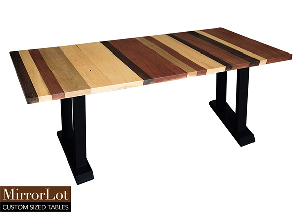 Wood & finish: Stripes of natural walnut, mahogany, and poplar table top and black table legs