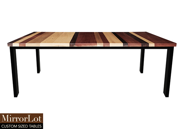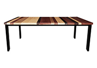 Wood & finish: Stripes of natural walnut, mahogany, and poplar table top and black table legs
