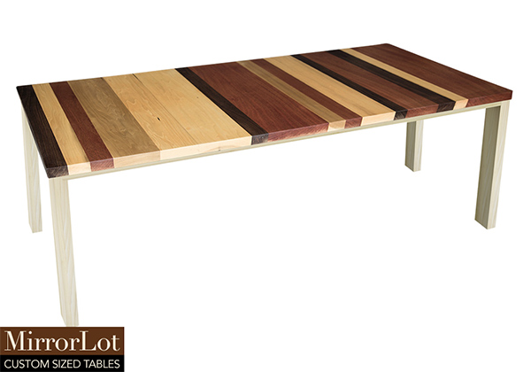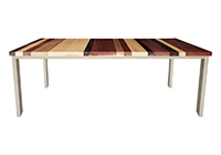 Wood & finish: Stripes of natural walnut, mahogany, and poplar table top and natural poplar table legs