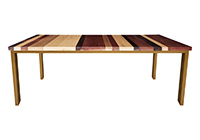Wood & finish: Stripes of natural walnut, mahogany, and poplar table top and natural spanish cedar table legs