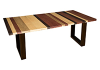Wood & finish: Stripes of natural walnut, mahogany, and poplar table top and bronze walnut stained table legs