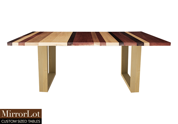 Wood & finish: Stripes of natural walnut, mahogany, and poplar table top and natural supreme alder table legs
