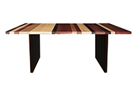 Wood & finish: Stripes of natural walnut, mahogany, and poplar table top and bronze walnut stained table legs