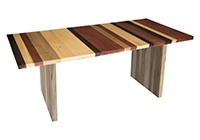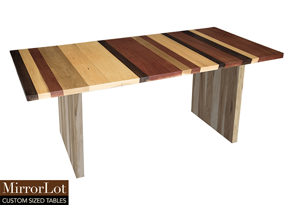Wood & finish: Stripes of natural walnut, mahogany, and poplar table top and natural pecan hickory table legs