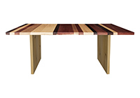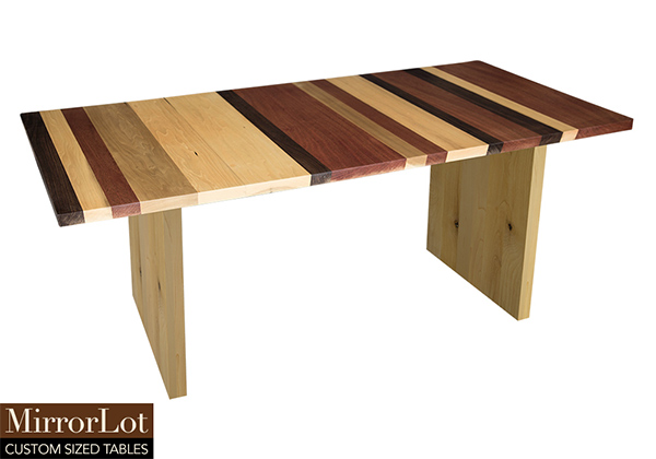 Wood & finish: Stripes of natural walnut, mahogany, and poplar table top and natural supreme alder table legs