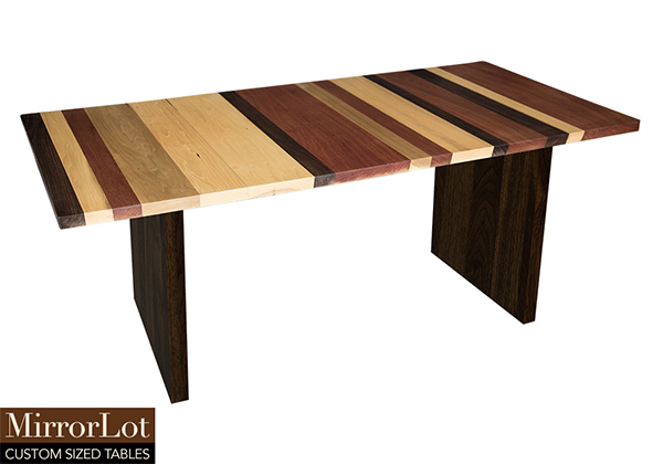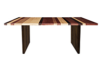 Wood & finish: Stripes of natural walnut, mahogany, and poplar table top and natural american walnut table legs