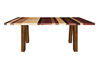Wood & finish: Stripes of natural walnut, mahogany, and poplar table top and natural african mahogany table legs