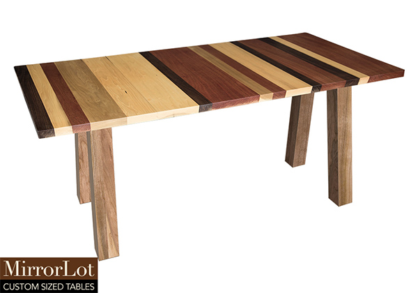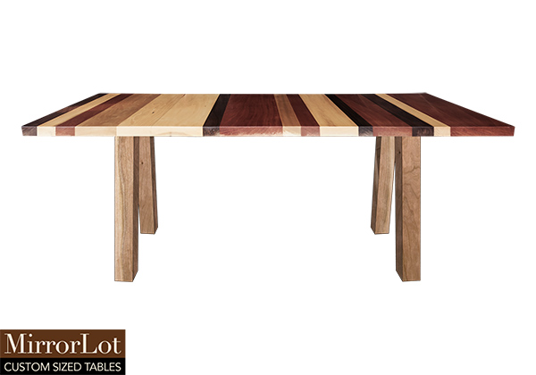Wood & finish: Stripes of natural walnut, mahogany, and poplar table top and natural cherry table legs