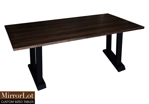 This dark walnut bronze stained table is simple, yet has a classic look that never goes out of style. It is rectangular, but can customized to your desired shape and size. The rectangle shape table top is made from solid poplar wood and the table legs are