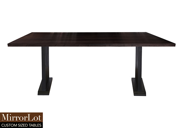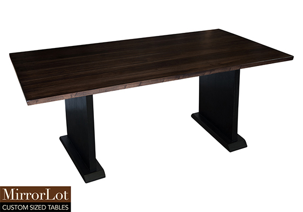 This dark walnut bronze stained table is simple, yet has a classic look that never goes out of style. It is rectangular, but can customized to your desired shape and size. The rectangle shape table top is made from solid poplar wood and the table legs are