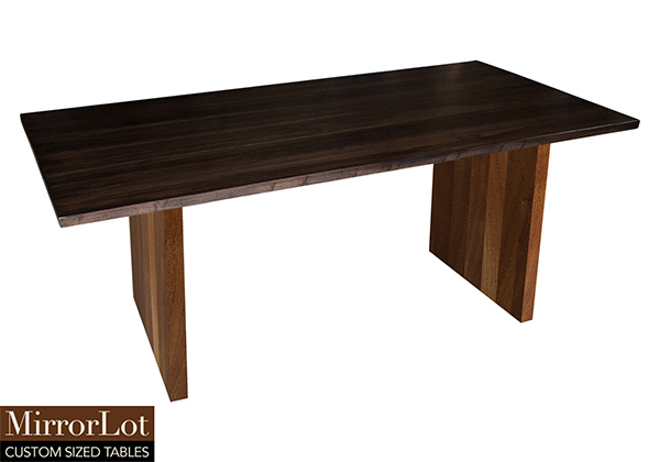 This dark walnut bronze stained table is simple, yet has a classic look that never goes out of style. It is rectangular, but can customized to your desired shape and size. The rectangle shape table top is made from solid poplar wood and the table legs are