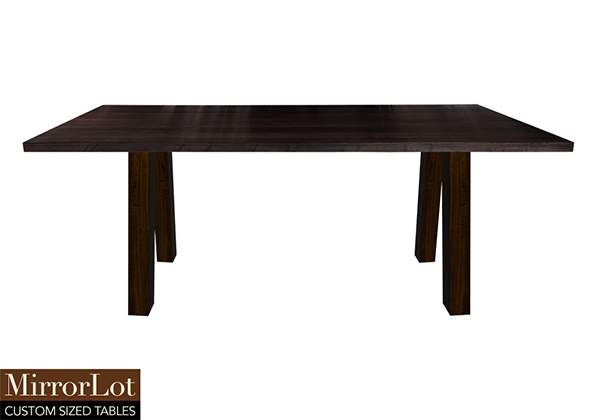 This dark walnut bronze stained table is simple, yet has a classic look that never goes out of style. It is rectangular, but can customized to your desired shape and size. The rectangle shape table top is made from solid poplar wood and the table legs are