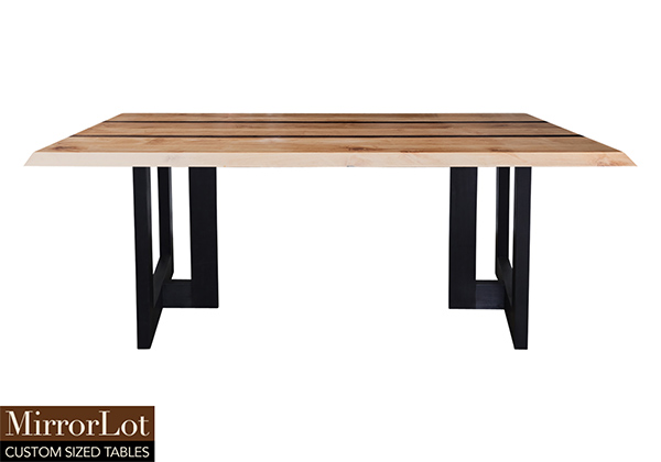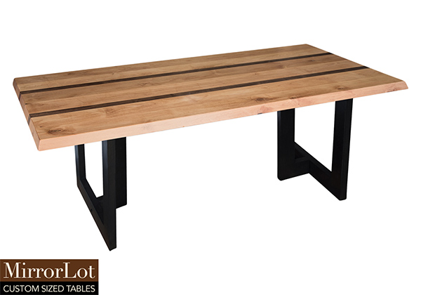 This natural alder and walnut table brings rustic charm to any room in your house. It is rectangular with a beveled edge, but can be customized to your desired shape and size. The rectangle shape table top is made from solid walnut, rustic alder wood and the table legs are