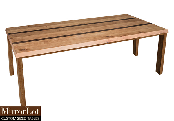This natural alder and walnut table brings rustic charm to any room in your house. It is rectangular with a beveled edge, but can be customized to your desired shape and size. The rectangle shape table top is made from solid walnut, rustic alder wood and the table legs are