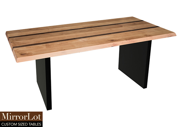 This natural alder and walnut table brings rustic charm to any room in your house. It is rectangular with a beveled edge, but can be customized to your desired shape and size. The rectangle shape table top is made from solid walnut, rustic alder wood and the table legs are