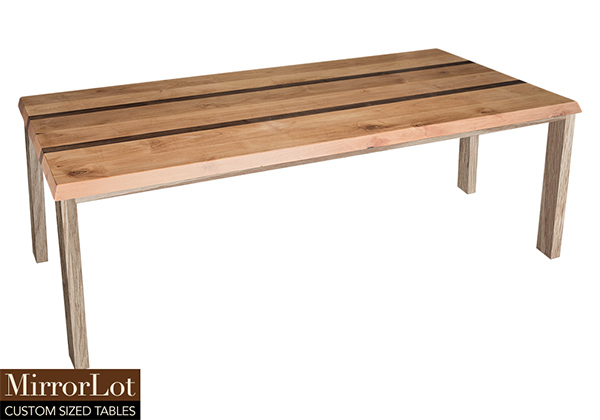This natural alder and walnut table brings rustic charm to any room in your house. It is rectangular with a beveled edge, but can be customized to your desired shape and size. The rectangle shape table top is made from solid walnut, rustic alder wood and the table legs are