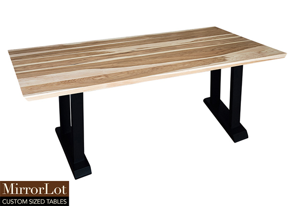 This pecan hickory solid wood table brings rustic charm to any room in your house. It is rectangular with 2 beveled edges on the two ends of the table and can be customized to your desired shape or size. The rectangle shape table top is made from solid pecan hickory wood and the table legs are