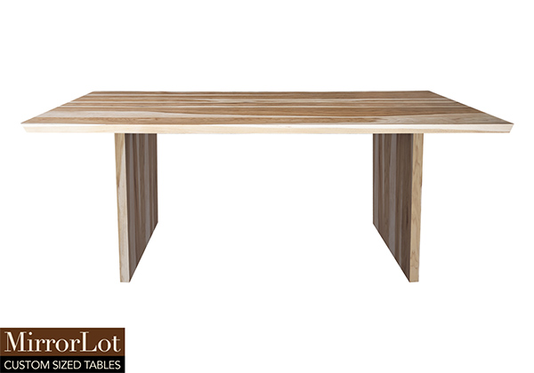 This pecan hickory solid wood table brings rustic charm to any room in your house. It is rectangular with 2 beveled edges on the two ends of the table and can be customized to your desired shape or size. The rectangle shape table top is made from solid pecan hickory wood and the table legs are