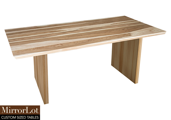 This pecan hickory solid wood table brings rustic charm to any room in your house. It is rectangular with 2 beveled edges on the two ends of the table and can be customized to your desired shape or size. The rectangle shape table top is made from solid pecan hickory wood and the table legs are