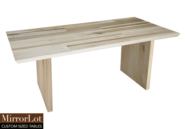 This poplar solid wood table brings rustic charm to any room in your house. It is rectangular with beveled edges, but can be customized to your desired shape and size. The rectangle shape table top is made from solid poplar wood and the table legs are