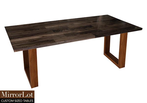 This natural walnut table brings rustic charm to any room in your house. It is rectangular but can be customized to your desired shape and size. The rectangle shape table top is made from solid walnut wood and the table legs are