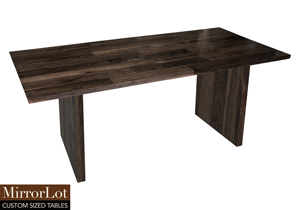 This natural walnut table brings rustic charm to any room in your house. It is rectangular but can be customized to your desired shape and size. The rectangle shape table top is made from solid walnut wood and the table legs are