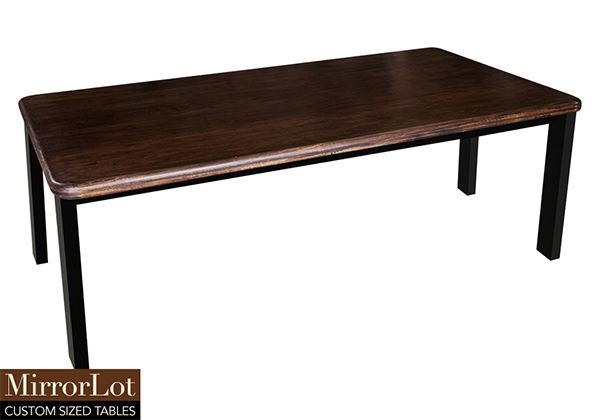 This bronze walnut stained table is simple, yet has a classic and rustic look that never goes out of style. It is rectangular with smooth rounded edges, but can customized to your desired shape and size. The rectangle shape table top is made from solid poplar wood and the table legs are